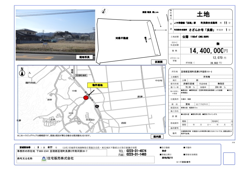 ■亘理町字長瀞󠄀字堂前土地